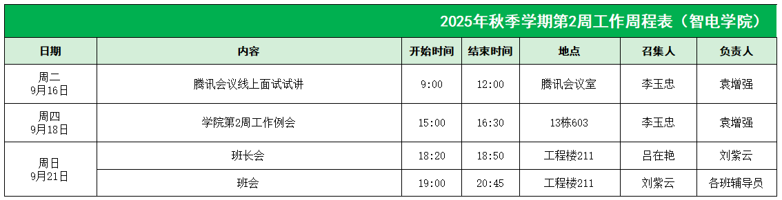 2025年秋季学期第2周工作周程表
