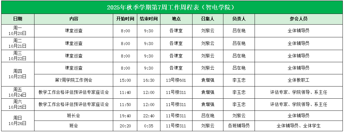 2025年秋季学期第7周工作周程表