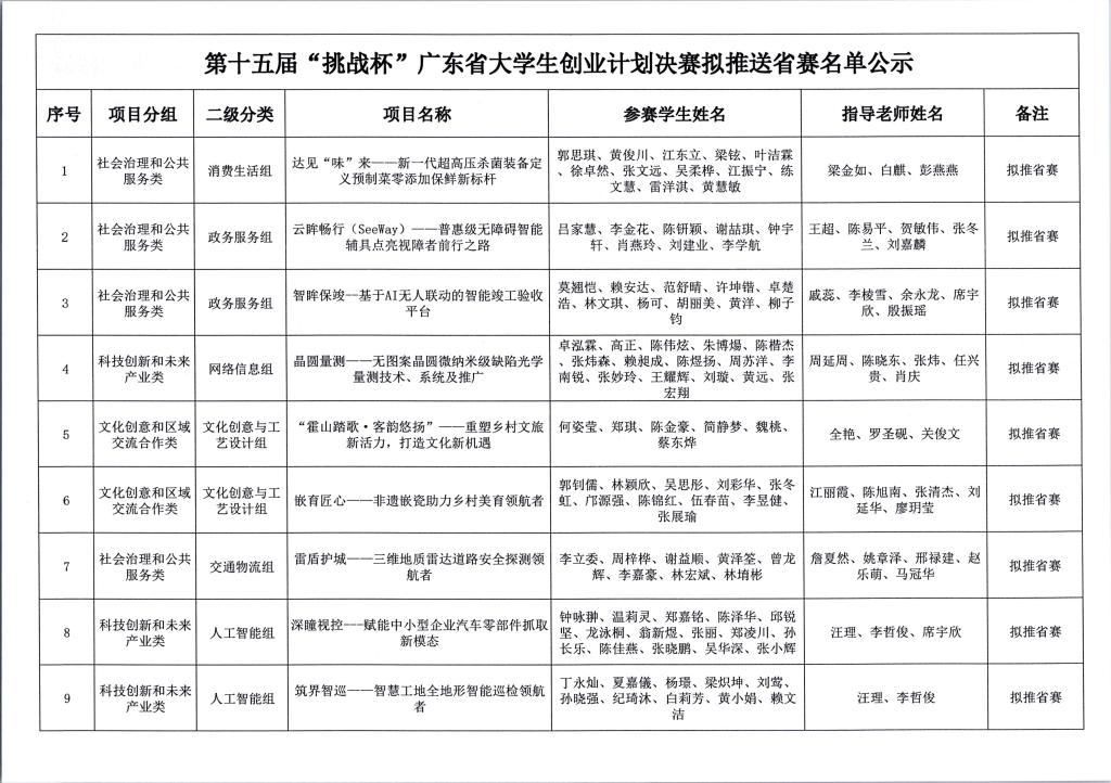附件:第十五届“挑战杯”广东省老员工创业计划决赛拟推送省赛名单公示.pdf