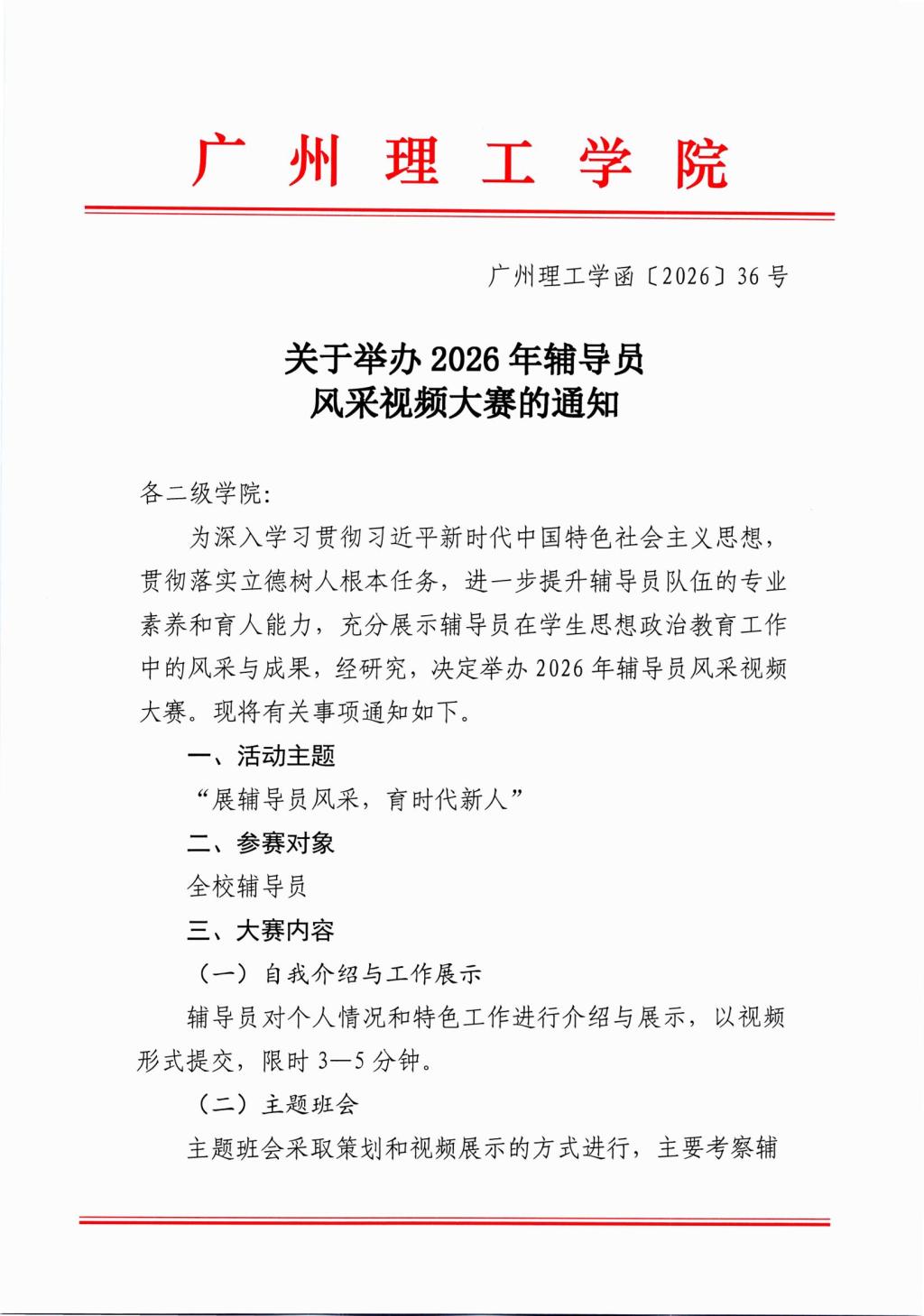 关于举办2026年辅导员风采视频大赛的通知
