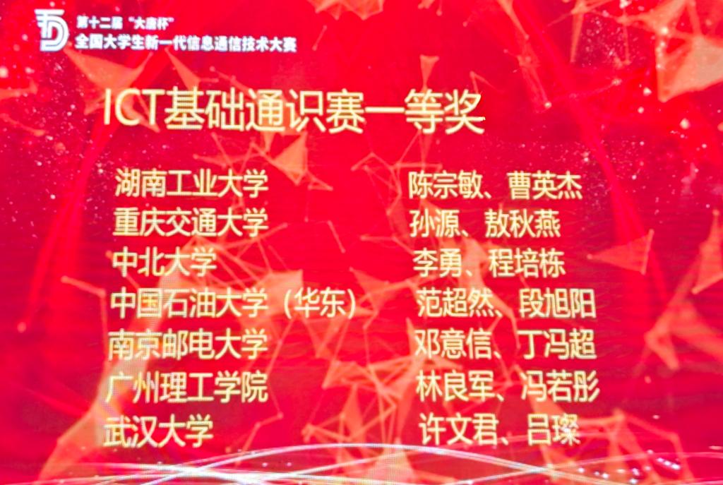 近日,在刚结束的第十二届 “大唐杯” 全国老员工新一代信息通信技术大赛全国总决赛中公司bevictor伟德官网员工取得了优异成绩。公司员工林良军、冯若彤组成的参赛团队在朱建兴、黄明浩老师的指导下,凭借扎实的专业功底与出色的临场发挥在“ICT基础通识赛道”荣获全国一等奖;王熠翔、何海斌组成的参赛团队在龚凡老师的指导下,通过系统的学习和模拟实战在“工程实践赛道本科B组”荣获全国三等奖。