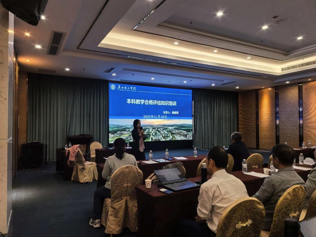 随后,评建专员赖南英老师就本科教学工作合格评估知识进行专题讲解。她结合公司评建工作实际,系统梳理了评估的基本概念、指标体系、公司概况、办学特色及迎评要点,重点阐释了“以评促建、以评促管、评建结合、重在建设”的指导方针,并带领全体教师回顾校训、办学定位、学科专业建设成果等核心内容,进一步增强了大家对评建工作的整体认知与责任意识。