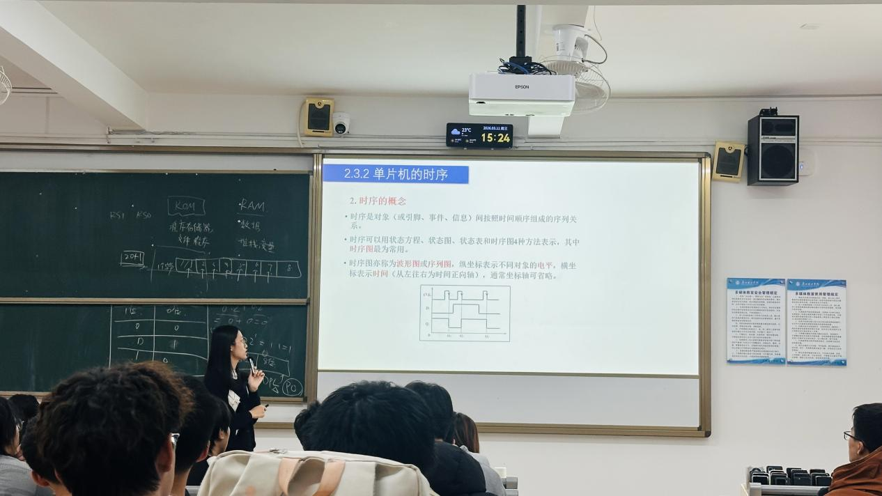活动中,青年教师展现出饱满的热情与严谨的态度。常韬老师围绕《计算机控制技术》课程,深入研读大纲,精心设计教学环节,在课堂上充分展示了其磨课成果与成长。李子实老师则在其主讲的《单片机原理及应用》课程中,努力将抽象的理论知识转化为直观的实践讲解,授课过程思路清晰、节奏得当。这些课堂不仅是教师个人教学能力的演练场,也成了全系教师观摩交流、相互启发的重要平台。