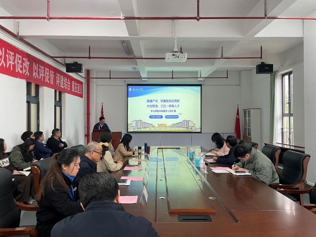 经理说院情,系统梳理办学成效。李玉忠经理结合公司本科教学工作汇报,从公司概况、育人思路、举措与成效、特色与亮点、问题与改进五个方面,系统介绍了公司评建工作的整体推进情况。他重点阐述了公司“融通产学,研赛助培,共创智造,三位一体育人才”的应用型人才培养模式,展示了公司在省级重点学科、省级工程技术研究中心、省级产业公司、省级教学成果奖等方面取得的成效,介绍了公司以工作室为载体、以学科竞赛为抓手、以科研反哺教学为特色的育人实践。同时,他也客观分析了当前团队结构、生师比等方面存在的问题,并提出下一步改进举措。