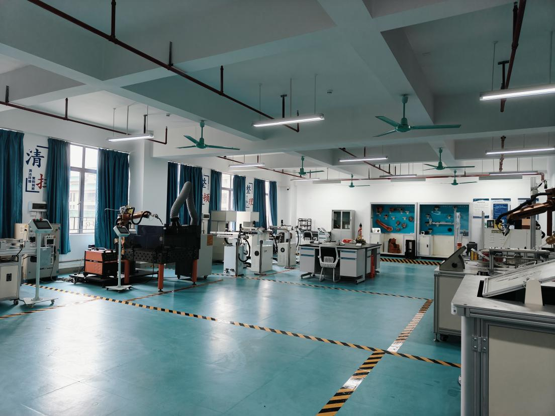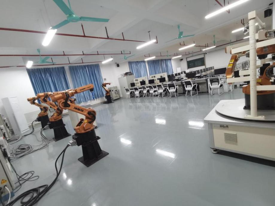 本实验室以多种常用工业机器人为主、包含多种智能机器人和实用教学机器人装置,囊括了ABB、KUKA(库卡)、FANUC(发那科)、YASKAWA(安川)四大家族机器人以及国产的广数机器人,以满足机器人的团队建设、培训考证和实践教学。此外,研发了四轴机器人等多种产品以及一批机器人专利技术转让,获得了较好的经济效益。